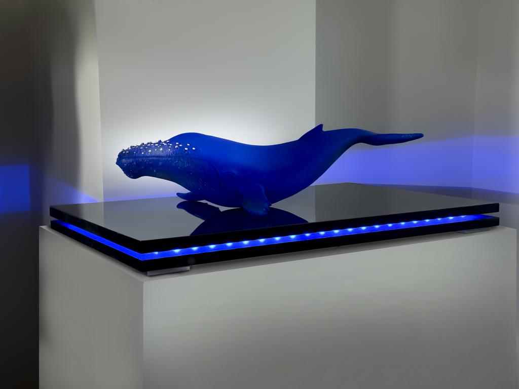 Swarovski, socle chêne massif, Inox poli miroir led.